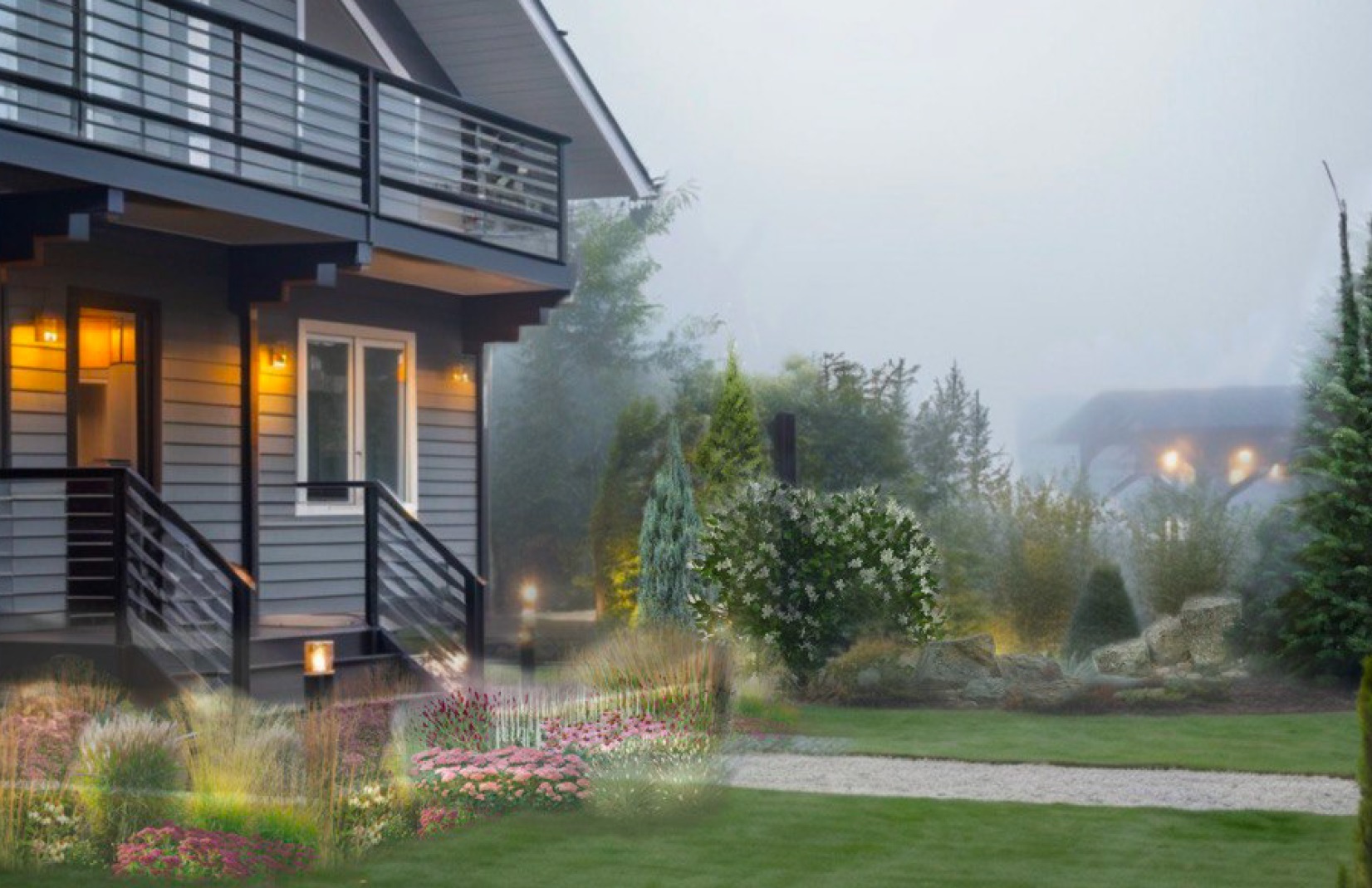 Результат: Вечером участок выглядит больше и красивее.